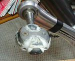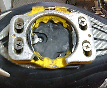 今日はペダルについて書きますね。ペダルはスピードプレーを使っています。去年い わきクリテ予選でSPD-SLがはまらなくてスタートでいきなり切れそうになった苦い経 験からこれにしました。両面キャッチなので、慣れるとシマノのMTB用みたいに使い やすいです。 ただし、スプリングがなじむまで少しかたいのと、雨のレース会場ではクリ―トに泥 が付かない様気を使います。それと、ソール曲面とクリ―トの隙間に付属のスペー サーをいれて隙間を無くすんですけど、これをいい加減にやると、装着時の性能が悪 くなります。 僕は自分で樹脂を削ってスペーサーを自作しました。このあたりはお店か、僕で良け ればお話しできると思います。 それではまた。