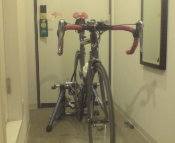 愛知に来てます。 いつ帰れるか決まってないので、残念ながら加東には行けません。 暫く朝練もお休みです。 そうそう、我孫子から車で来たので東名を走ったのですが、地震の震源近くのエリアは50キロ規制でした。 作業に従事している方は大変でしょうが、一日も早く通常の状態に戻ると良いですね。 実業団メンバーが加東までスムーズに移動出来る事を祈ってます。 あと、今回は車で移動してきたので自転車とローラー持って来ちゃいました。 ホテルの掃除のおばちゃん、かなり掃除の邪魔ですね。ゴメンナサイ。。。 今日ちょっとだけローラー回してみましたが、ホテルの部屋って自分の部屋より騒音に気を使いますね。 深夜や早朝は無理そうです。 ではまた。