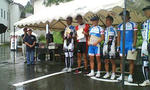日曜パーソナリティ武末です。 今日は、小川村で実業団レースがありましたので、報告します。 今回も前日入りで長野に到着! 小川は、初めてのコースなのでビビりーの武末はなんとしても試走したかったのでした。 試走していると最近毎度ですが、雨がポタポタ!そして、しだいにザーザー本降りに。 小川の下りは、長くて早い!とっても怖いコースです。 そんなコースで、雨が降るれば、武末のやる気がどん底に! どうした、武末元気だせ! お天道様にお願いしてオヤスミしました。 そして、次の日 雨はやんでましたが路面は、かなりウエット。 高速コーナーが続くので怖いレースになると思われます。 ロード始めて3年目の武末は朝からビビりまくり! しかし、朝一のレース。ERクラスで竹内さん 今井さんが気合いの登りで武末のテンションが上がってくる。 そして、久々復帰の増田君 終始優勝争いに絡む走りを見て、影響受けやすい武末やる気まんまんに! そして、天気も雨がパラパラ降るも路面が乾いてきた。 武末もうこれは、やるしかありません。 気合いを入れて、8時からアップ!アップを終えて気づいた。しまった!間違えた! 9時からやるアップを間違えて1時間前にやってしまった。 3時間前に出来上がってしまった武末気合いは、あるがテンパリすぎだ! レースのスタートがせまると武末のやる気を削る雨降りが! そんな中のスタート。 パレードからみんなやる気で、殺気立ってる。 危険なので、田尻さんと併走して自分を落ち着かせる事に! 前方には、塚野さんとムネヨシ君!2人ともやる気のオーラが! そして、周回コースに入って本番のスタートに! またまた、ドーンとスピードが上がる。平地だけどキツイ!慣れるまでかなり時間が必要だ。 その強度に慣れる事なく、キツいまま登りに!小川のコースは登りと下りだけの地獄のレース。その地獄が始まったのでした。 最初の登りで、次々脱落者が出て行くような展開。 前と人と少しでも間あくと、すぐ差が広がってしまう。 中切れのオンパレードだ! こんな時は、前の人がヤバかったら、その後ろを走ってはいけない。 しかし、中切れしたい気持ちも分かる。途中から気温が上がって登りがキツいのだ! なんとか粘って前にへばりついた。 そして、集団が小さくなりながら頂上へ。 こっからが、ロード3年目の武末 ビビり全開!下りでは、前と差が開いてしまう。 後ろの方には、申し訳ないっす! ダサい。ダサ過ぎるぜ武末 それでも、下りで行けるとこで踏んで集団の中をキープ! 小川は、テクニックがない武末にとって下りもキツいのだ。 そんな中シマノの選手が逃げる!しかし、武末苦しいので展開なんて知ったこっちゃありません! 苦しいレース周回を重ねて行く。 頂上付近では、補給係で中越さんが! 実はこれが凄かったのです! さすが自衛隊の方!各チーム入り乱れて混乱している中50メートル先から聞こえる声! どこに、補給があるかバッチリ! こんな分かりやすい補給は、オッティモ以外他にはありません! ある意味名物補給で、一見の価値ありです。 中越さん!ありがとうございました! そして、レースの方! 周回を重ね中盤以降の展開 シマノの1人逃げを逃がす為に、残ったシマノの方が小さくなった集団を抑えにかかる。 そのままレースは進む!終盤の登りで、ふと回りを見ると回りは、自分以上に苦しそうに見える。 ならば、武末先頭に出てシマノの逃げを追ってみる! なんと、ここでタイムが縮まるじゃないですか。 やるだけやってやるぜ!武末、途中で本気踏み。 ついに、頂上手前でシマノの逃げる選手をとらえそのまま、交わして登って行く ここで回りを確認!シマノ2 ニッポ1 自分の4人に、気分をよくした武末 記念に先頭でゴール地点通過。最後の1周の鐘が鳴る! 最後の下り!下りは、下手っぴの武末 微妙に前の選手と差があく。が、なんとか粘って下りを終えた。 そして、2~3キロの平地区間へ 残ったのは、ニッポ佐野選手 シマノ野寺選手 オッティモ・ホル元武末の3人 後ろとは、40~50秒差 駆け引きができる2人は、後ろを待とうとして、前を引いてくれない。 たぶん集団になったら負ける武末。ここは引くしかありません! こっからが地獄のプレッシャー!後ろに、佐野選手 野寺選手ベタづき。 武末心拍数180オーバーで先頭引き!集団が近づくプレッシャーも! とにかく、全開!登り始めでいきなり、佐野選手のアタック! いきなり来た!ムリくり足を回して、へばりつく! そして、今度は野寺選手だ!武末が終わる様子を伺っているのか? しかし、必殺技炸裂だ! 苦しい表情が笑っちゃてる顔に見える武末!相手は、困惑してるようだ! このおかげか、アタックがおさまった。 が、今度は、後ろの集団が気になってしまう! しかたなく、また武末の引きが始まる。 苦しい!苦し過ぎるぜ武末。心拍数187じゃないか! このまま死んじゃいそうだぜ! そのまま、引いて登り後半。佐野選手が来た!アタックだ! 一瞬終わったと思った。 が、まだ、ちょっと意識があった