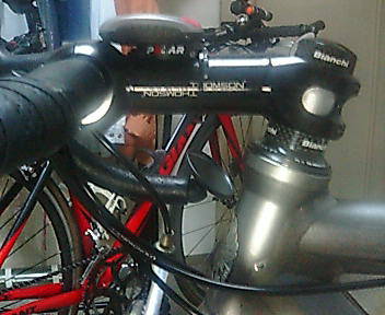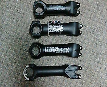 今日はステムのお話です。 今のバイクはロードバイクに乗り始めてからずっと乗っています。レース仕様で重量 は8.6kg あんまり軽くはありませんね。 ポジションは大分変りました。 ステムだけでも最初の110mm84°から120mm84°,120mm80°,130mm80°そして今は 130mm73°です。 こうなるとフレームサイズが小さいのかなと思うとそうでもなくて、 インソールを見てもらう時にお相談するとシートアングルやヘッドチューブ長さなど も関係してくるそうなんです。 メーカーはトムソン、軽量ですがボルトサイズが一般的な物より細いので、トルクに は注意が必要です。 ハンドルは2本締めなので特に気を使います。ちょっと緩いとブラケットポジション で段差を越える時 パキッという音とともにおじぎします・・・ 組み付けはお店に任せた方が無難かもしれません。 |