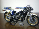 今日はあったかいですね。僕も久しぶりに手賀沼走りました。 やっと体調が回復してきたので、これから少しづつ走ろうと思います。 というわけで、ネタ切れなので、模型の写真を載せますね。 25年位前に模型雑誌のライターを少しやったんですけど、その時雑誌にのせた物で す。 これはSUSUKI RGB500 1980年前半のマシンです。 キャブレターやクラッチ、電装系、ブレーキ(アンチノーズダイブ機構という面白い メカです)などのパイピングを追加 ディスクブレーキ(フローティング機構など)チャンバーの固定スプリングも別パー ツで自作。 タンク、シートカウルも形状を手直ししています。 チェーンのコマを置いたので大きさが解るでしょうか。 ホイールはカンパニョーロ。この頃はこんなのも作ってたんですね。 しばらく模型シリーズ行っちゃおうかな・・・ なんだか模型雑誌のブログみたいだけど、許して下さいね。